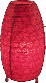 GURU SHOP Corona Lokta Papier Tischlampe/Tischleuchte 30 cm - Rot, Lokta-Papier, Bunte, Exotische Tischlampen