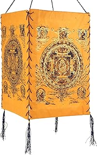 GURU SHOP Lokta Papier Hänge Lampenschirm, Deckenleuchte aus Handgeschöpftem Papier - Buddha Mandala Orange, Lokta-Papier, 28x18x18 cm, Asiatische Deckenlampen aus Papier & Stoff