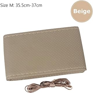 SKS Distribution® Auto-Lenkradbezug mit Nadeln und Faden, Kunstleder, schwarz mit roten Linien, Größe M 35,5 cm – 37 cm