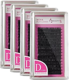 Beauty7-4 Packungen Mink Lashes-Einzelwimpern-D-Curl-Wimpernverlängerung-0.20mm Stärke-Länge 9mm 10mm 11mm 12mm