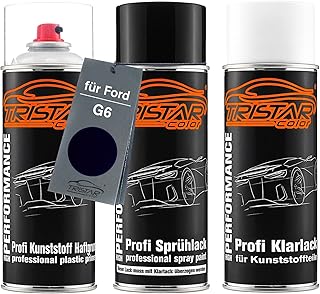 TRISTARcolor Autolack Spraydosen Set für Kunststoff Stoßstange für Ford G6 Panther Black Perl Haftgrund Basislack Klarlack mit Weichmacher Sprühdose