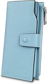 Geldbörse Echtleder Damen Telefon Brieftasche 21 Kartensteckplätze Clutch Umschlag Reißverschluss Münzfach Kreuz Lichtblau