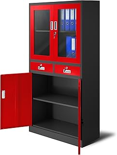 Jan Nowak Aktenschrank C017 mit 2 Schubladen Medizinschrank Büroschrank 2 Abteile Pulverbeschichtung Stahlblech 185 cm x 90 cm x 40 cm (anthrazit/rot)