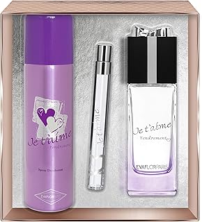 EVAFLORPARIS JE T'AIME PASSIONÉMENT Gift box Eau de Parfum 100 ml + Déodorant 150 ml + Pocket Atomizer 12 ml Set Women Spray for Her Women Perfume, 520 g