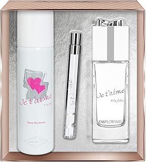 EVAFLORPARIS JE T'AIME À LA FOLIE Gift box Eau de Parfum 100 ml + Déodorant 150 ml + Pocket Atomizer 12 ml Set Women Spray for Her Women Perfume, 520 g