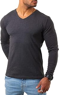 by Young & Rich Herren Longsleeve mit tiefem V Ausschnitt - Langarm Shirt V einfarbig Slim fit - Uni Basic Langarmshirt V Neck Shirt Stretch - Größe S bis 3XL